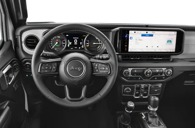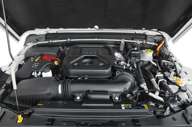 The Jeep Wrangler 4xe is a plug-in hybrid SUV that pairs a turbo four-cylinder engine with electric motors for about 375 hp and 470 lb-ft, offering up to around 21 miles of electric-only range, multiple hybrid driving modes, and the same legendary off-road capability, ground clearance, and four-wheel-drive systems that the Wrangler is known for.